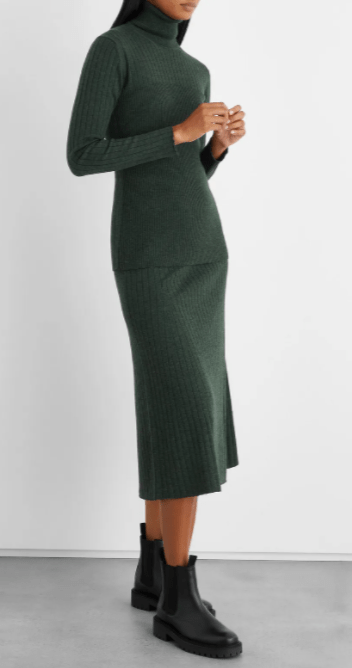 J’aime beaucoup l’ensemble avec la robe, mais cela s’accorderai mieux avec des bottes.