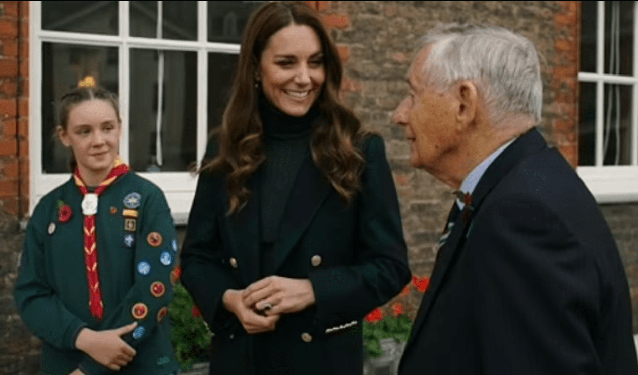 Dans une atmosphère cosy à l’éclairage tamisé, la marraine des scouts d’Angleterre s’entretient avec deux générations de scouts. Kate a réuni le colonel Blum, vétéran de la Seconde guerre mondiale et la jeune Emily. La duchesse anime la discussion centrée sur l’importance du devoir de mémoire. La rencontre a eu lieu début novembre à l’hôpital royal de Chelsea.