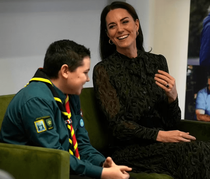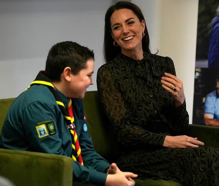 Exit les masques, l’ambassadrice de la santé mentale sourit à visage découvert. Elle consacre une partie de son après-midi à la visite du siège du service d’assistance par messagerie basé à Notting Hill. Elle est venue témoigner toute sa reconnaissance aux équipes de travail mobilisées 24h/24. La duchesse a aussi échangé avec un scout de treize ans. Leo, le généreux donateur, a recueilli la somme de £8,000 (reversée à Shout) en dormant dehors pendant un an. “Bonjour, je suis Kate” lui a dit la marraine des scouts en se présentant.