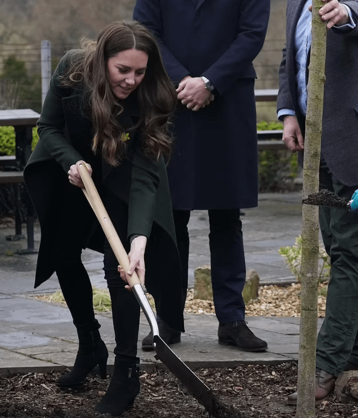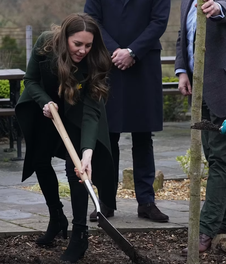 Tout commence dans les bonnes odeurs de foin chez un éleveur de chèvres, avec une duchesse très à l’aise dans sa tenue rustique (elle enfile un manteau vert par la suite) matinée d’une écharpe rouge, écho au dragon du drapeau du Pays de Galles. Les Royals se lancent dans la préparation d’une spécialité pâtissière servie à la St David. Une recette que la duchesse reportera dans son cahier. L’odyssée s’achève sur un geste symbolique. Un arbre est planté pour marquer le soixante-dixième anniversaire de règne de la reine Elizabeth II.