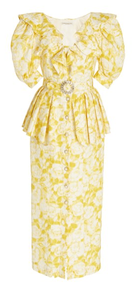 En revanche, la robe peplum me laisse pantoise: qu’est-ce-que c’est que ces volants et ce gros noeud sur le décolleté?