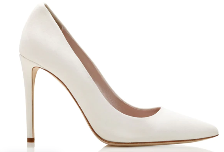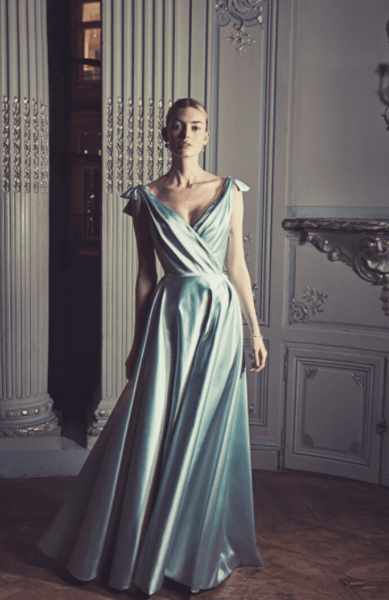J’aime bien la robe en satin duchesse, sobre et romantique à la fois.