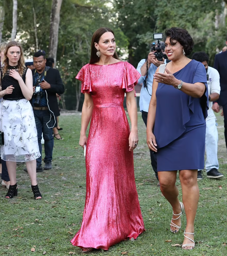 Superbe robe de soirée . Je suis plus septique pour le collier qui ne rend pas, du moins en photo. Kate a été sublime dans l’ensemble pour ce voyage. J’aurais aimée peut être qu’elle s’habille plus court…..Mais c’est peut être la mode….