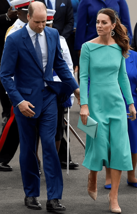 Les BAHAMAS!!! 🐬 Alors là je suis contente😃😃😃 Mon compagnon est des Bahamas et depuis que j’y suis allée, le turquoise est ma couleur préférée. 🐠 Sa robe turquoise avec ses boucles d’oreilles assorties me font hyper plaisir😍😍😍 La robe en mousseline vert pastel est divine aussi😍😍😍 et j’aime bien ses escarpins blancs. Merci pour ces choix de couleurs réfléchis, Kate, ils sont très appréciés🇧🇸