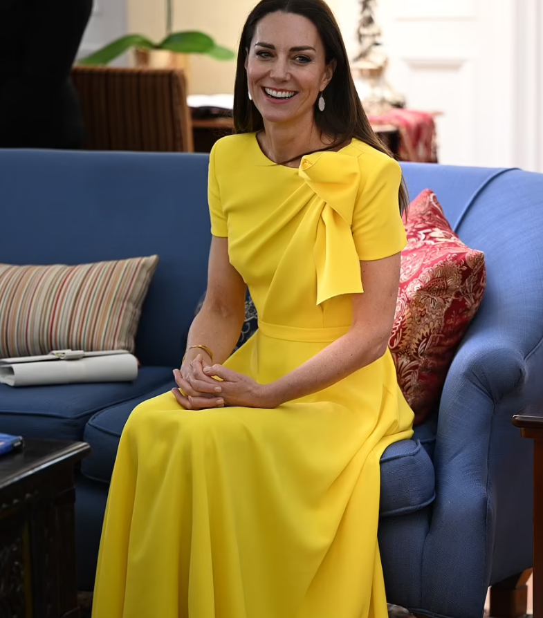 Suis je la seule à trouver les tenues de Kate terriblement Mémère ? Le pompon revient à la robe jaune du départ, difficile de faire plus laide! La seule tenue chic et dynamique : veste rouge et pantalon blanc, une allure sans défaut. Pour le reste, ma grand mère n’en aurait pas voulu… Et j’atteins la soixantaine !