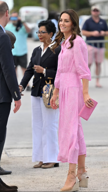 Les BAHAMAS!!! 🐬 Alors là je suis contente😃😃😃 Mon compagnon est des Bahamas et depuis que j’y suis allée, le turquoise est ma couleur préférée. 🐠 Sa robe turquoise avec ses boucles d’oreilles assorties me font hyper plaisir😍😍😍 La robe en mousseline vert pastel est divine aussi😍😍😍 et j’aime bien ses escarpins blancs. Merci pour ces choix de couleurs réfléchis, Kate, ils sont très appréciés🇧🇸