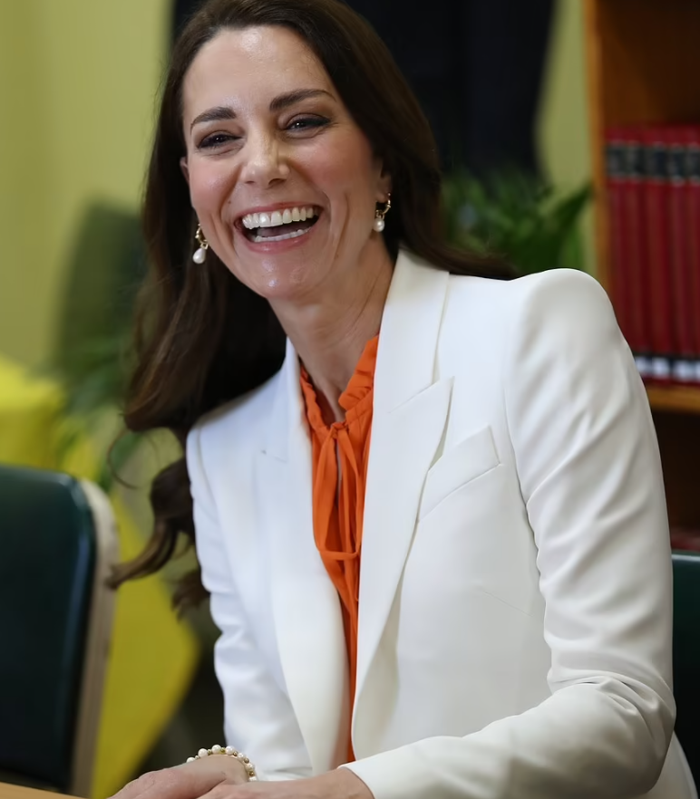 Pour ce voyage, je retrouve un peu le style de la princesse Mary de Danemark qui me plait bcp d’ailleurs. Kate ose un peu et sort de ses classiques ….coupes habituelles. J’ai bcp le semblant de raie sur ses cheveux quant ils sont attachés, le changement d’accessoires, le tailleur blanc lui va très bien et lui procure bcp de fraicheur!