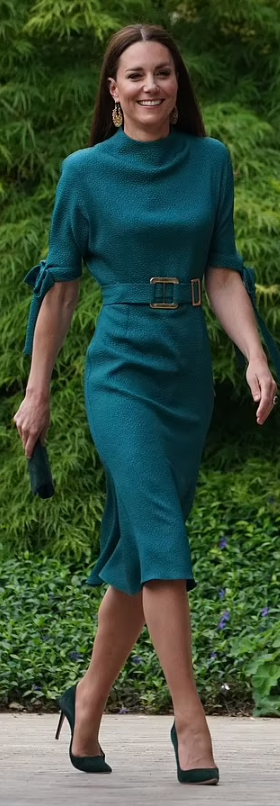 Enfin, superbe couleur pour cette jolie robe qui met la silhouette de la Duchesse en valeur, et pour une fois avec une longueur raisonnable, BO et brushing impeccables, je chipote sur la pochette et les escarpins que j’aurais aimé d’une autre couleur.
