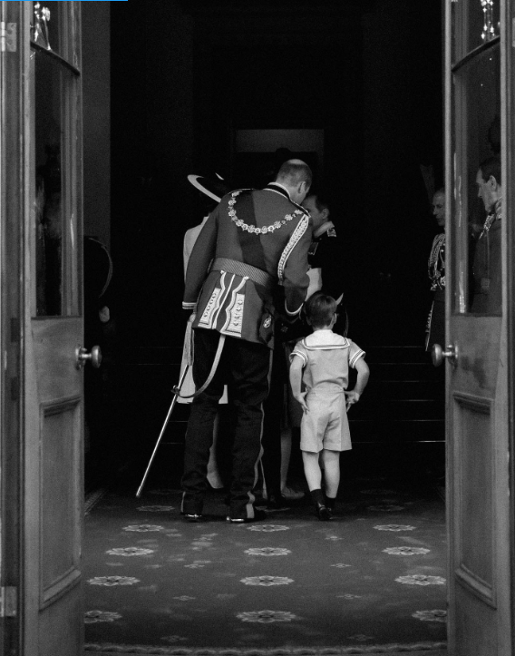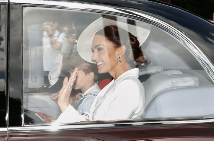 Généreux, le duc et la duchesse de Cambridge nous offrent deux photos des coulisses de la cérémonie du Salut aux Couleurs. Ici, Kate et les enfants attendent leur landau