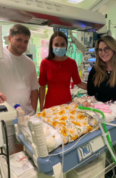 La marraine de l’hôpital Evelina en visite privée. Sur le pont pendant les festivités, la duchesse a pensé à ceux qui ne peuvent pas participer au Jubilé. Une attention digne d’une future reine