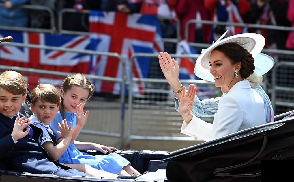 Trooping The Colour 2022, George, Charlotte et Louis de bleu vêtus rendent hommage à leur arrière-grand-mère. Les enfants Cambridge s’offrent leur premier tour de landau