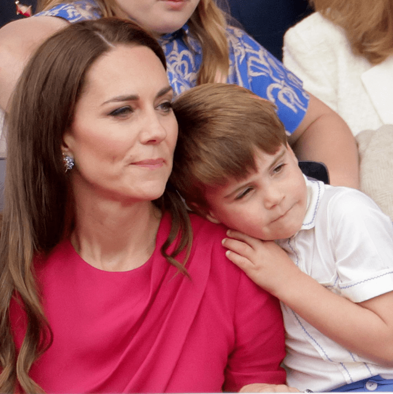 J’ai trouvé notre Duchesse très en beauté, j’aime beaucoup sa coiffure et quel bonheur de voir les 3 petits héritiers fêter leur illustre arrière grand mère 😊