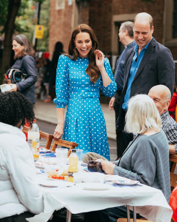 Sreet party de Kensington. Kate et William font la causette avec leurs voisins de quartier