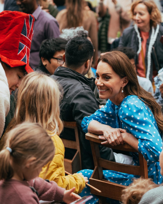 La marraine de l’hôpital Evelina en visite privée. Sur le pont pendant les festivités, la duchesse a pensé à ceux qui ne peuvent pas participer au Jubilé. Une attention digne d’une future reine