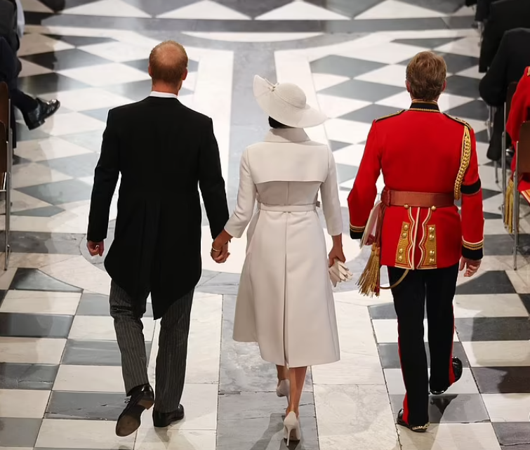 Il faut attendre le 3 juin pour retrouver les Sussex sous le feu de la royauté. Acclamés par certains aficionados, ils assistent à l’office religieux célébré à la cathédrale Saint-Paul et se retirent à Frogmore Cottage, leur ancienne demeure. Les sourires sont convenus…toujours le spectacle des apparences. La bonne camaraderie des Fab Four appartient au passé. A Saint-Paul, les frères ( ennemis ?) ne se côtoient pas. Ils sont placés loin l’un de l’autre.