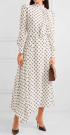 1. Merci, moi j’aime tout: la robe asymétrique à pois, le chapeau tout léger, le chignon, les superbes boucles d’oreilles…