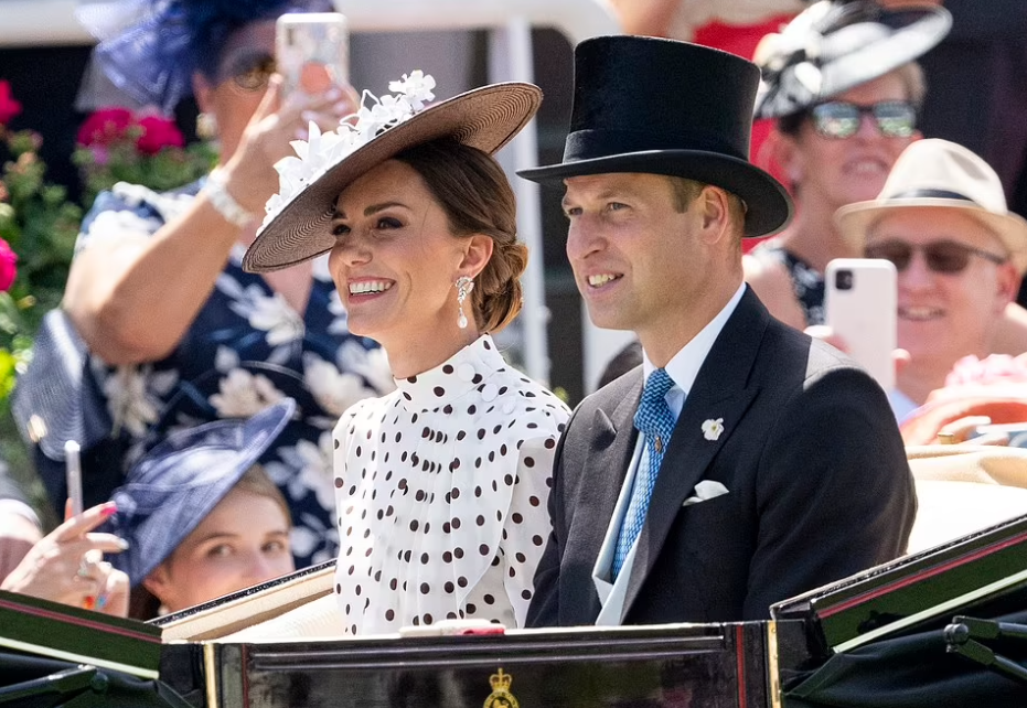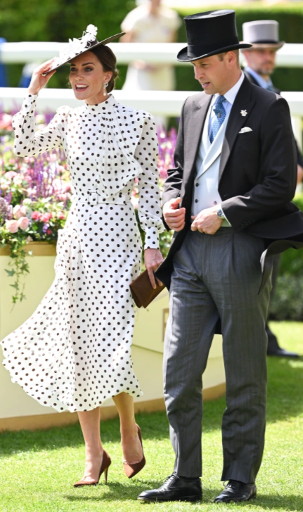 Qu’en est-il du look de la duchesse ? On connaît ses préférences pour les pois et les coiffes en fleurs. Hissée sur ses talons hauts, habillée longueur chevilles, elle foule l’herbe du paddock suivie de près par son fringant gentleman.