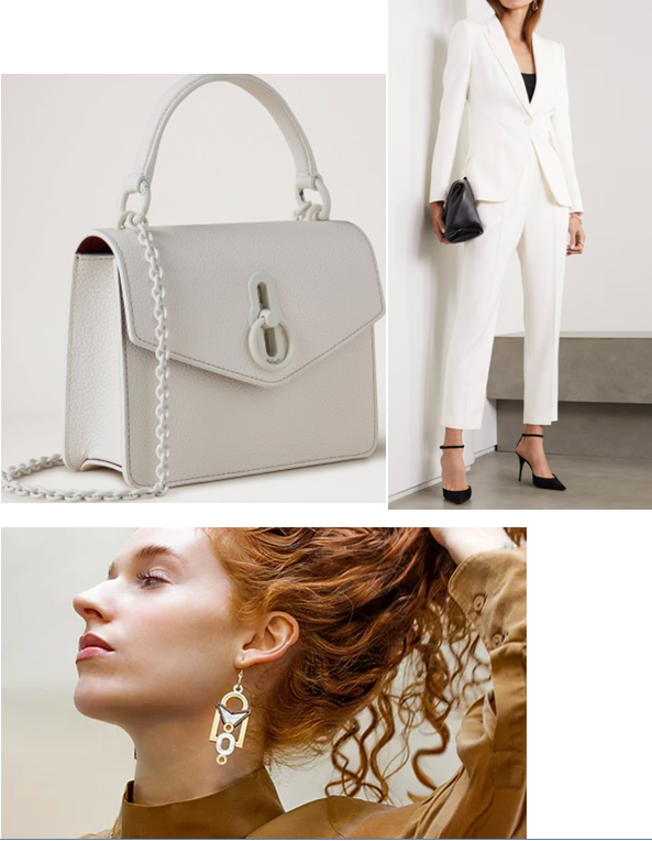 Sac Amberley Mulberry, tailleur pantalon McQueen , boucles- d’oreilles “Florence” Chalk Jewelry