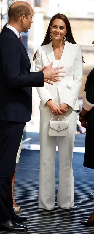En cette date hommage, le couple princier couvre deux engagements. Très prisé par Kate, le duo blazer-pantalon est plus que jamais d’actualité.