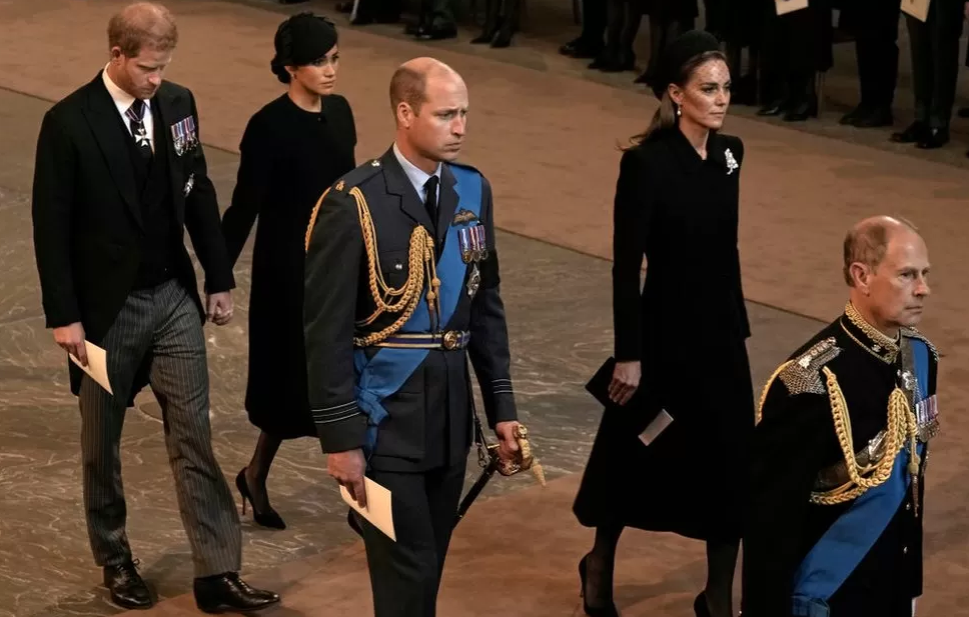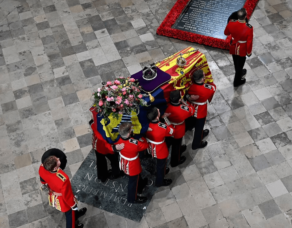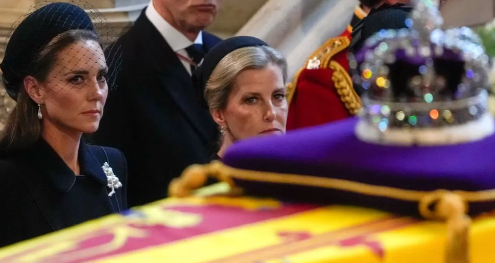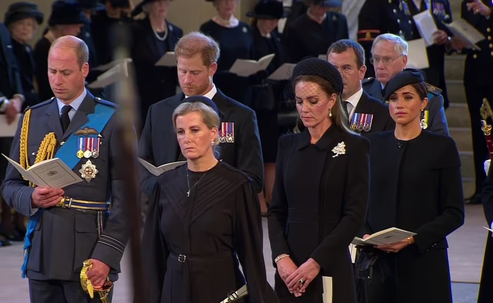 Plusieurs choses m’ont marquée : l’impressionnante organisation (sans faute) de ces funérailles, l’impressionnante fille d’attente, pendant plusieurs jours pour rendre hommage à la Reine, la veillée des princes, les tenues parfaites de toutes les ladies de la famille royale et à leur tête notre nouvelle princesse de Galles, l’apparition surprise des “Fab four”…