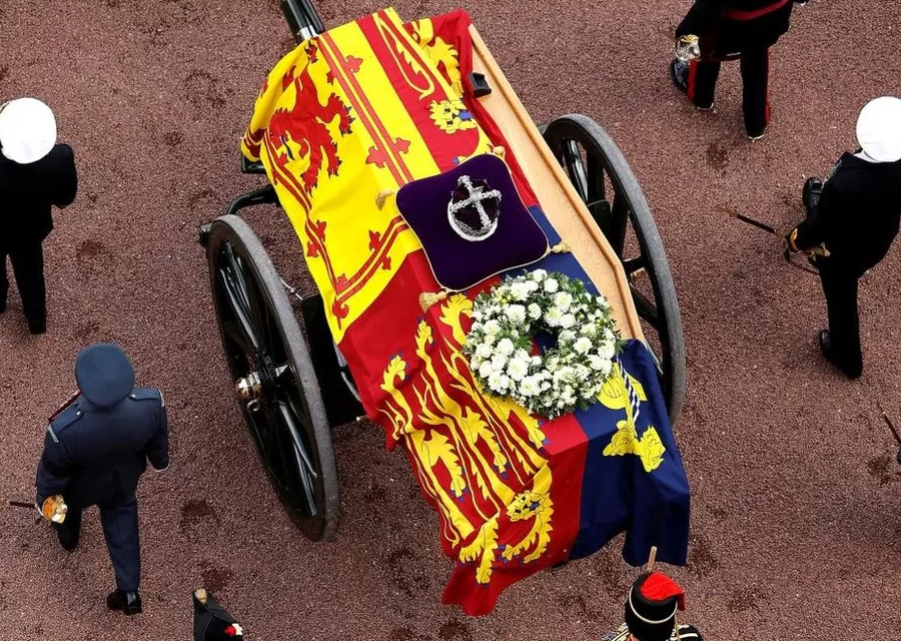 Doit-on y voir un dernier pied de nez ? Alors que l’Ecosse aspire à prendre son envol, Elizabeth II meurt en reine des Highlands. A Balmoral, le convoi funéraire entreprend un long périple, emmené par une princesse Anne effondrée. Il traverse l’Ecosse puis rejoint la capitale. Posé sur une prolonge d’artillerie, le cortège funèbre traverse la ville, suivi par le roi, ses deux fils, la princesse royale, les princes Andrew et Edward. William se revoit adolescent en train de marcher derrière le cercueil de sa mère. Big Ben émet un son sourd qui se fond dans les accords de la marche funèbre de Beethoven. De nuitée, le corbillard franchit l’entrée principale du palais de Buckingham sous les applaudissements. Il est suivi par les voitures des Windsor. La solennité efface tous les sourires de représentation.
