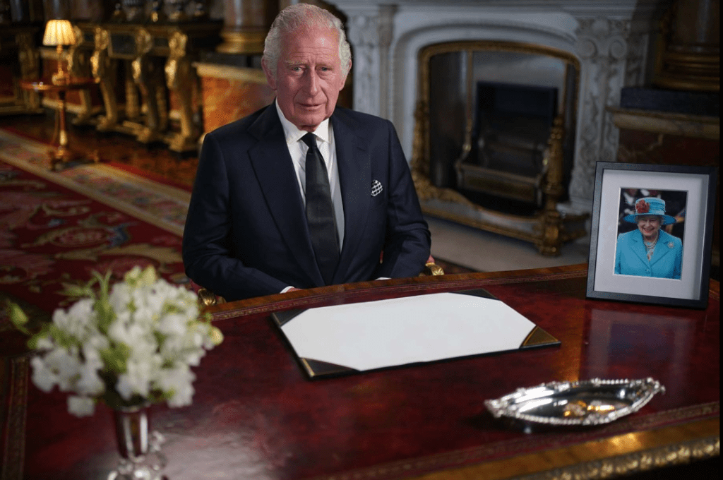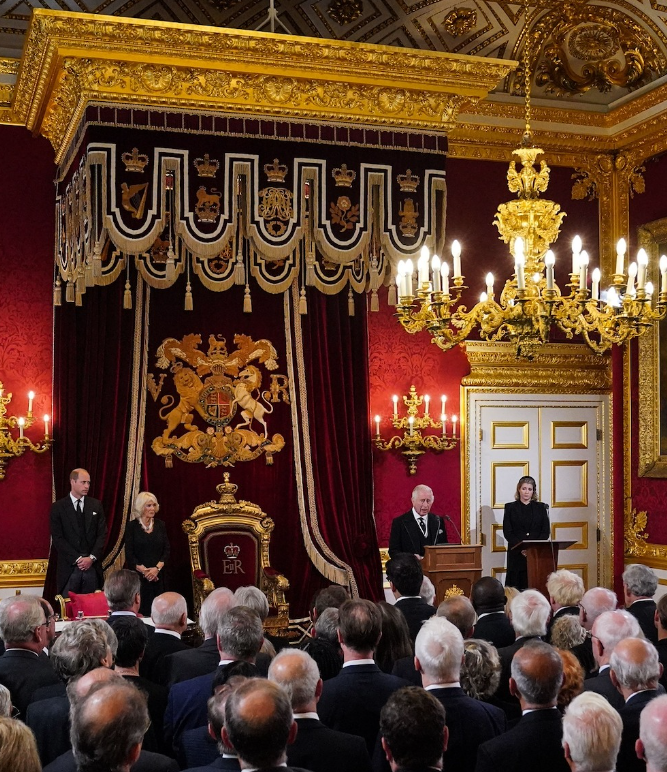 Rivés à leurs écrans, les téléspectateurs vivent les débuts du règne. Proclamé roi par le Conseil d’accession, Charles III s’adresse à ses sujets de Grande-Bretagne, d’Ecosse, d’Irlande du nord et du Commonwealth. Il a rédigé un magnifique discours, belle déclaration d’amour à sa reine de cœur Camilla et à ses deux fils. Il est fier de présenter William en tant que nouveau prince de Galles (avec effet immédiat) et duc de Cornouailles, avec Catherine à ses côtés, sans oublier Harry et Meghan qui “façonnent leur nouvelle vie”. La duchesse de Cambridge reprend le titre de lady Diana. Un titre que la nouvelle reine consort avait eu l’élégance de refuser, afin de ne pas heurter les défenseurs de “la princesse du peuple”, pour lesquels il ne peut y avoir qu’une seule princesse de Galles. Le grand-père paternel de Lilibet et Archie Sussex peut, par lettres patentes, accorder les titres de prince et princesse à ses petits-enfants. L’avenir nous le dira. La prochaine biographie du prince Harry inquiète William et son père. Il ne faudrait pas que de nouvelles révélations viennent obscurcir les premiers pas du souverain. Charles III poursuit son allocution. Il se décrit « élevé dans le sens du devoir des autres » et s’engage à assurer la continuité et à préserver l’église anglicane dont il est le chef suprême. Le roi insiste sur la justice sociale, en référence à un gouvernement libéral. Dans la foulée, il lance la grande opération de séduction des foules, à grand renfort d’étreintes et d’embrassades. Le successeur d’Elizabeth II est pris dans un faisceau de cérémonies, d’obligations et de déplacements. Pour la première fois depuis 70 ans, les mesures du God Save The King retentissent sous la nef de la cathédrale Saint–Paul. Sous peu, billets, monnaie, timbres, passeports à l’effigie du monogramme EIIR deviendront collectors.