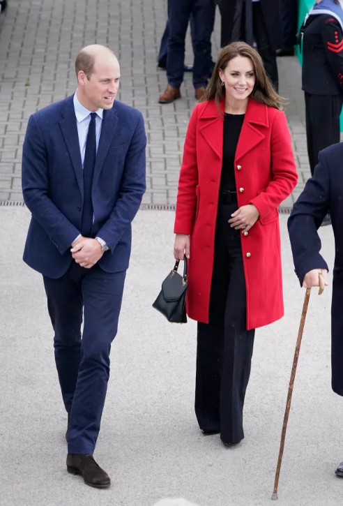 Kate étrenne un manteau qui la protège des premiers frimas. Il est de la couleur du Dragon rouge (le drapeau officiel du Pays de Galles) et se nomme “Spencer’, bel hommage à l’ex princesse dont elle a repris le titre.