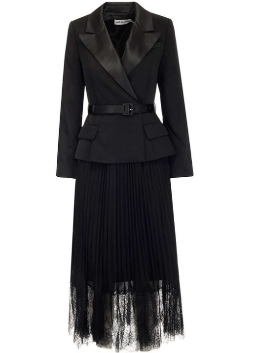 J’ai fait quelques recherches (que j’aurais dû effectuée avant de poster ce commentaire) et il s’agit bien d’une robe composée d’une jupe plissée et d’une veste.