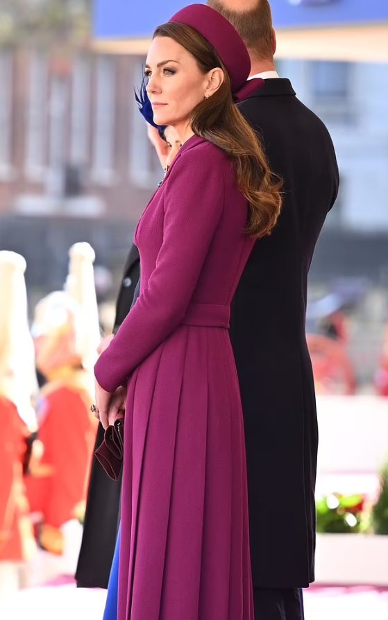 Délicatesse de la princesse de Galles qui par la couleur choisie laisse “la vedette” à la reine Camilla.