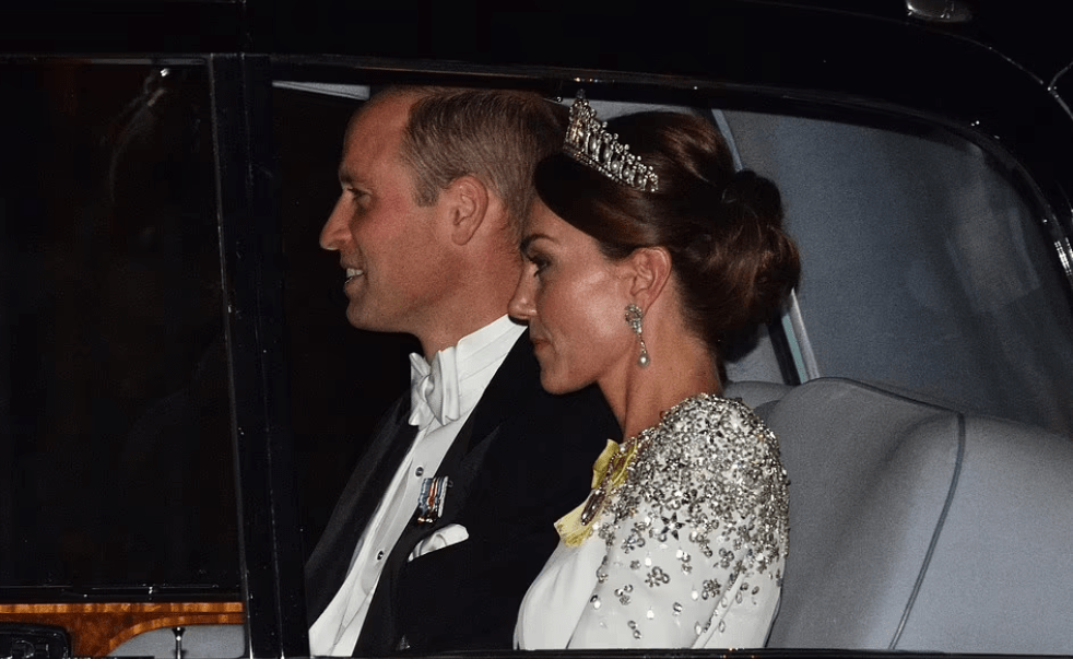 Summum de toute visite d’Etat, le banquet royal donné par le couple souverain décline les pompes de la monarchie britannique. Encore une soirée qui rapproche la princesse de Galles, ruisselante de diamants et de paillettes, de son fabuleux destin.