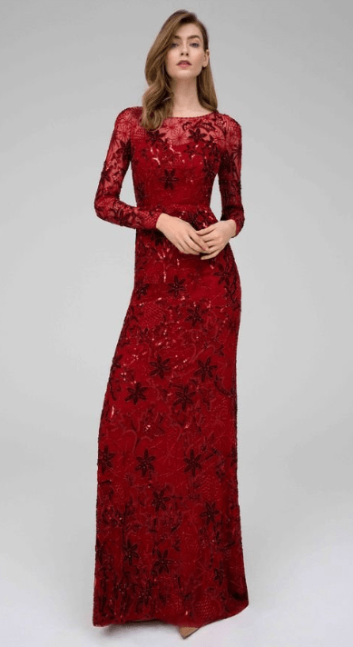 Pour ma part, je trouve la robe un peu kitch, un petit air de mère Noël … Mais la coupe est belle et bien portée, c’est le combo rouge bordeaux/sequins qui fait un peu trop à mon goût. Après c’est peut être volontaire vu la période !