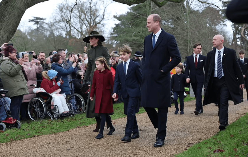 Les manteaux sont chauds, les gants et les bottes recommandés, le port du chapeau exigé. En terme de couvre-chef, le cœur de Catherine balance entre le bandeau de velours et le pillbox. Son feutre a du panache. Elle les préfère de grande envergure, depuis qu’elle est devenue princesse de Galles. L’ourlet de son pardessus n’a pas raccourci. La fratrie aussi s’est mise sur son trente et un. Chacun donne son interprétation du style aristocratique anglais.