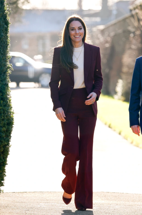 J’ai eu du mal à reconnaître le tailleur pantalon de Boston. Il est aussi parfait avec un chemisier à lavallière et un petit sac très chic qu’avec un “petit pull tout simple”. Et dans les deux cas de figure, la princesse de Galles a une allure moderne, élégante et classe à la fois!