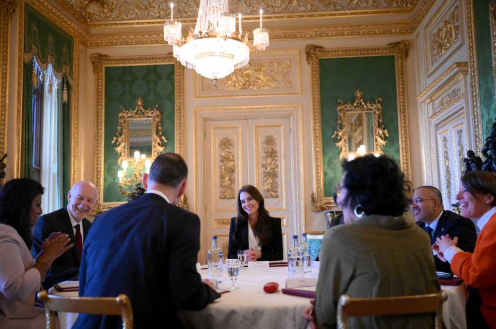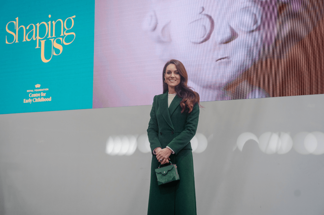 Un comité d’experts chargés d’éclairer sa lanterne en matière de petite enfance est convié à une table ronde, en prélude au lancement de Shaping Us, sa toute dernière campagne. Habillée de noir et blanc, efficace et professionnel ( une veste de smoking, un body et un pantalon souple ), Kate donne la poignée de mains à ses convives. Ses vêtements passent au second plan. Tout ce qu’elle porte est connu. “Nous sommes ici pour réfléchir et parler de la suite”, déclare-t-elle à son auditoire. Elle ne cache pas son impatience à l’idée de passer aux choses décisives la semaine prochaine. Les dix questions posées aux familles à l’échelle nationale, lui ont permis de mieux cerner son sujet principal. Ce socle qui nous façonne de 3 à 5 ans (c’est à cette période charnière que tout se décide selon elle), la marraine royale veut le cimenter afin de permettre à ses plus jeunes sujets de se construire dans un cadre épanouissant.