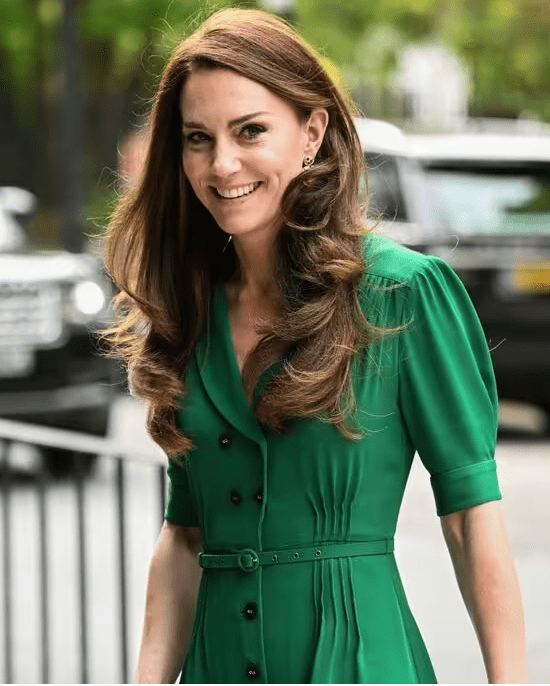 Quand Kate aime un vêtement, elle l’achète dans différentes couleurs. On avait déjà vu ce modèle en blanc et le voici en vert ( une de ses couleurs préférées) 😊