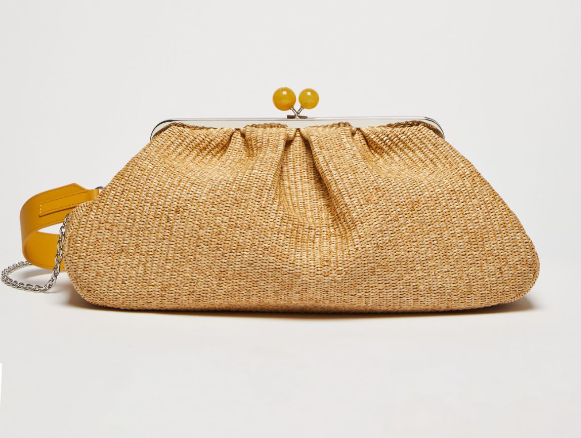 Shop the post : Veste et pantalon Mango ( 59,99€ et 39,99€). Tee-shirt Ibiza Mango (15,99). Boucles d’oreilles en résine Zara (12,95€). Souliers Agnès B (275€). Bourse grand Pasticcino raphia Max Mara (349, 00€)