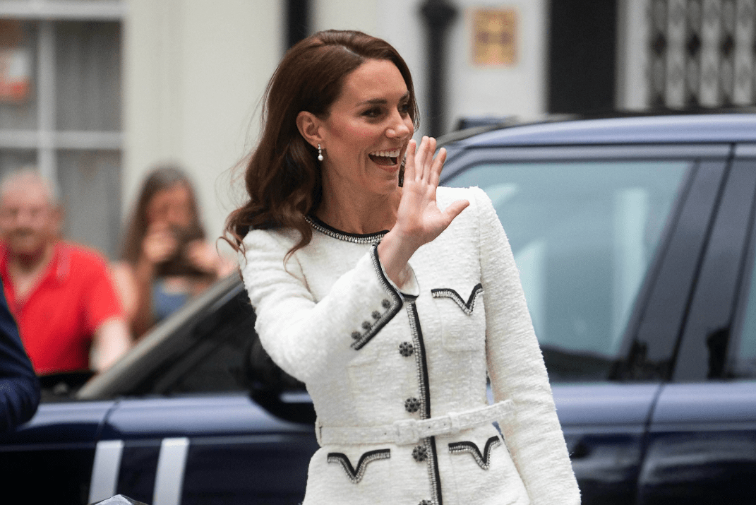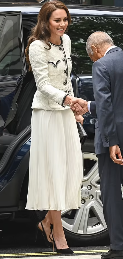 Kate réussit l’exploit de porter une veste chanel sans prendre un coup de vieux.