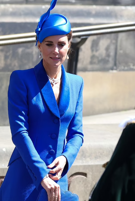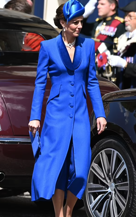Kate est élégante à l’anglaise tout simplement. Dans son uniforme bleu roi . Mais tout est dans le bibi- bijou bleu électrique ( et électrisant ) pimpant et sémillant .