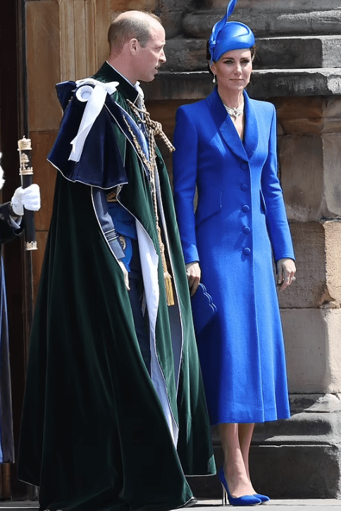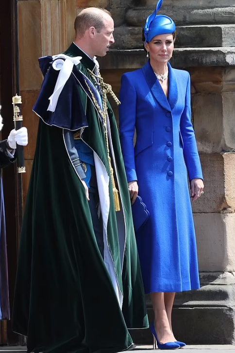 Kate est conforme à son image. Le bleu lui va bien le chapeau une belle création artistique…les pieds mortifiés et la silhouette déséquilibrée…