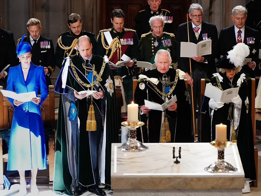 Semaine royale au berceau du tartan. Les Highlands passent à l’heure anglaise. Deux mois après son couronnement historique à l’abbaye de Westminster, le père de la nation reçoit les honneurs de l’Ecosse, la couronne et les regalia. Comme le veut la tradition ancestrale, le monarque a reçu les clefs de la ville d’Edimbourg. Ce mercredi 5 juillet, William et son épouse donnent la réplique à leurs majestés. C’est la première mission qu’ils honorent en tant que duc et duchesse de Rothesay. Un titre qu’ils ont reçu en même temps que celui de prince et princesse de Galles. Les héritiers de la couronne assistent au service religieux donné à la cathédrale St Giles d’Edimbourg. Le futur roi arbore l’uniforme et le manteau de chevalier de l’ordre de la Jarretière, sa bien-aimée une toilette haute couture aux couleurs de la Croix de Saint-André. Une procession populaire reflétant les différents aspects culturels se met en marche. Les limousines font le trajet jusqu’à la cathédrale dans une ambiance panachée d’acclamations et de réprobations. Pour les indépendantistes, c’est un jour comme les autres. Un imposant dispositif de sécurité veille au bon déroulement du second sacre. Fans de la royauté et antimonarchistes se font face. Les panneaux jaunes “Not my king” sont légion. Point d’orgue de l’opulente cérémonie, le survol du palais Holyrood par la Royal Air Force, sous les regards admiratifs de la famille Windsor.