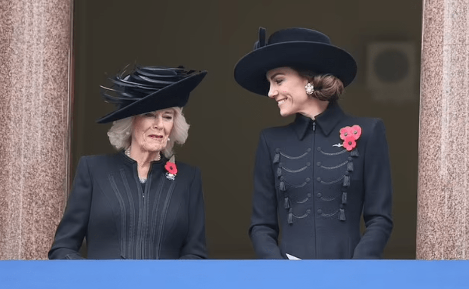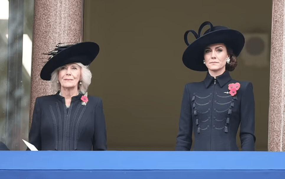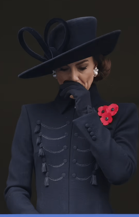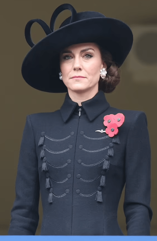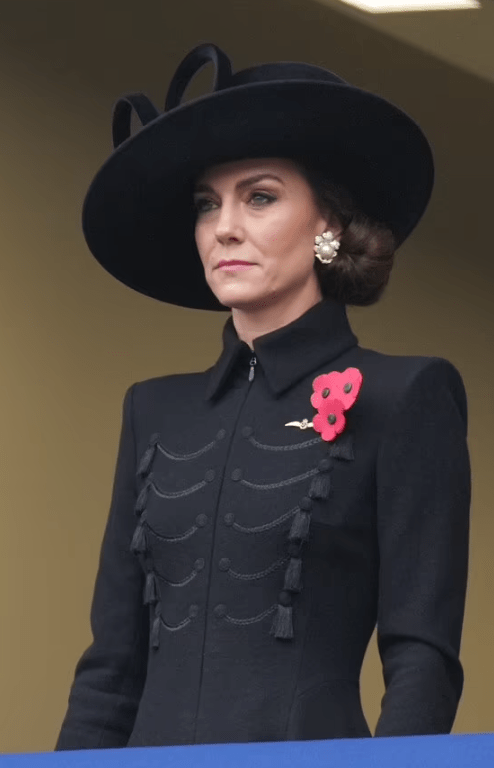 Le cérémonial du Souvenir a lieu chaque année, le deuxième dimanche de novembre. Les royaux et les membres du gouvernement se recueillent, devant le monument du Soldat inconnu de Whitehall. Une reine et une future reine occupent la place d’honneur. Comme au garde-à-vous, deux silhouettes aux visages graves se dessinent, au balcon du ministère des Affaires étrangères. Sa majesté la reine Camilla et son altesse royale la princesse Catherine surplombent la scène. Le présent et l’avenir de la monarchie. Toutes deux sont parées de bijoux en perles et diamants, recommandés par l’étiquette à ce genre d’évènement. Enveloppées dans leurs manteaux ornés de la broche symbolique, chapeautées et gantées de noir ( Cornelia James pour Kate ), les deux femmes aux destins extraordinaires, voient leurs bien-aimés fleurir le Cénotaphe de coquelicots. La famille royale a choisi un passage de l’Hymne de Rudyard Kipling pour évoquer la cérémonie sur ses réseaux sociaux : “Le tumulte et les cris meurent, Les capitaines et les rois s’en vont, Seul demeure Ton sacrifice antique, Un cœur humble et contrit, Seigneur Dieu de l’Univers, soit encore avec nous, Pour éviter que nous oublions, que nous oublions ! “
