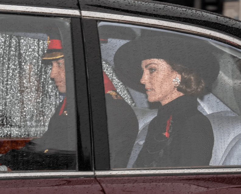 Concernant la toilette de la Princesse de Galles en revanche, rien ne va vraiment ensemble selon moi… Cette toilette me paraît vraiment too much : le grand chapeau avec son noeud en velours, les détails du manteau miliaire, les grosses boucles d’oreille, ce gros chignon… Chaque accessoire aurait dû se coordonner avec quelques chose de plus simple.