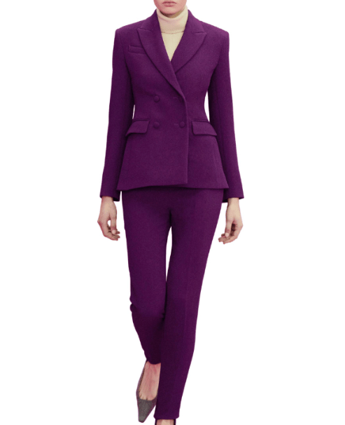 Enfin une tenue qui me plaît vraiment. Un beau tailleur, bien coupé(Français en plus) et surtout de ma couleur préférée.