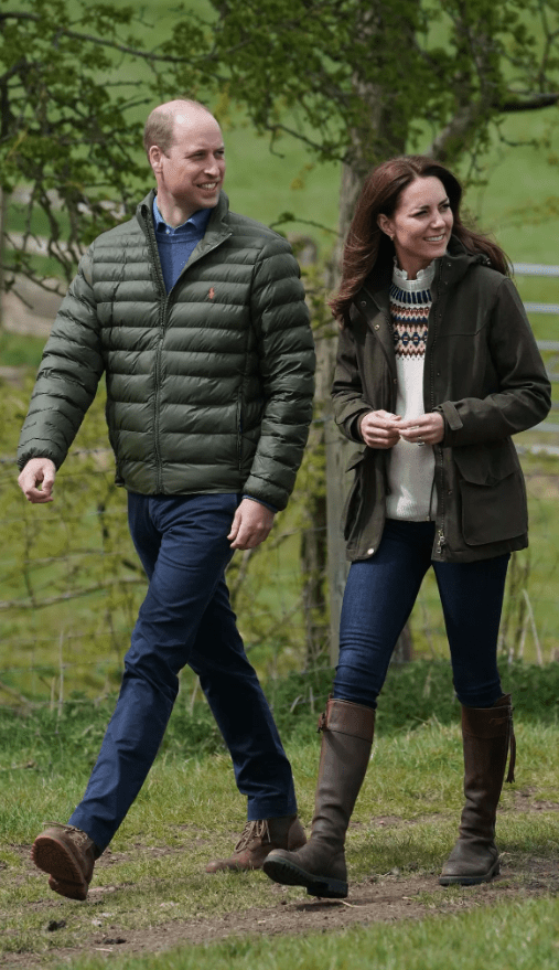 Barbour toujours. Chez les Windsor, le couple souverain, le prince et la princesse de Galles, la princesse royale, le duc, la duchesse d’Edimbourg et consorts ont chacun la leur. William et son père aiment lui coordonner une casquette en tweed, un brin old school. Le roi Charles met la sienne jusqu’à l’usure. Dans un documentaire britannique, on l’aperçoit revêtu d’un modèle classique, rapiécé de patchs en cuir. Quand ses obligations se déroulent dehors, la princesse Catherine ressort volontiers la sienne. Un pull col roulé en dessous, un slim, des bottes cavalières ou des bottillons, le style country chic est né !