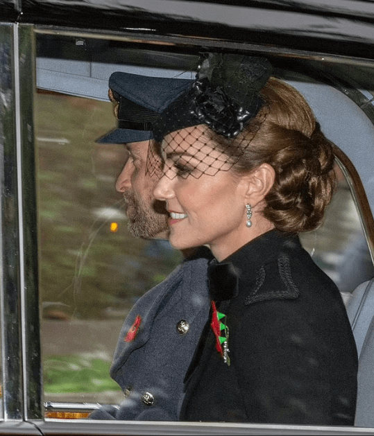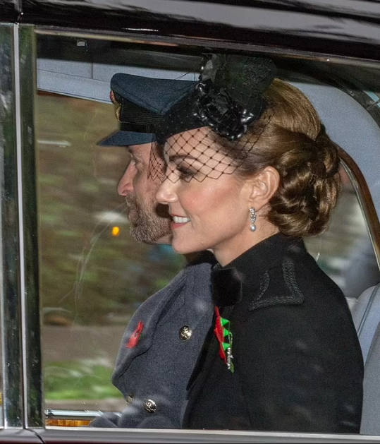 Kate fidèle à elle-même semble radieuse en dépit, du devoir de recueillement pour ces cérémonie, elle semble joyeuse et regarde william “de Haut”….