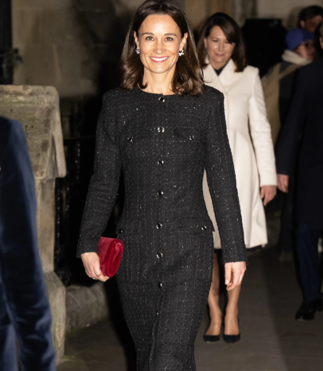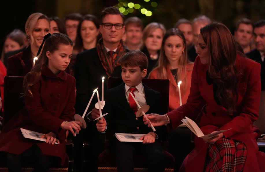 Deux édifices religieux occupent le haut de l’affiche. A Londres, “Ensemble pour Noël” réunit les royaux, leurs proches et 1600 convives. A Paris, Notre Dame se dévoilera demain au monde entier, en présence du prince de Galles. Les photographes jouent des coudes. L’arrivée du couple héritier hystérise les flashs. C’est à celui qui prendra la plus belle image du quintet modèle. George, Charlotte et Louis sont de sortie ! Ils sont aussi élégants que leurs parents. Leur prestation -sourires et belles manières – frôle la perfection. L’enregistrement du concert de chants distille un peu de la magie de Noël dans les cœurs éprouvés. Les Middleton, les Matthews s’associent à ce moment étoilé. L’année dernière, la maîtresse de cérémonie affichait un look manteau et pantalon à la blancheur hypnotique. Que portera-t-elle cette fois ? Sa préférence va à un long manteau rouge flamboyant souligné de velours noir et de l’écossais en dessous…les couleurs de Noël.