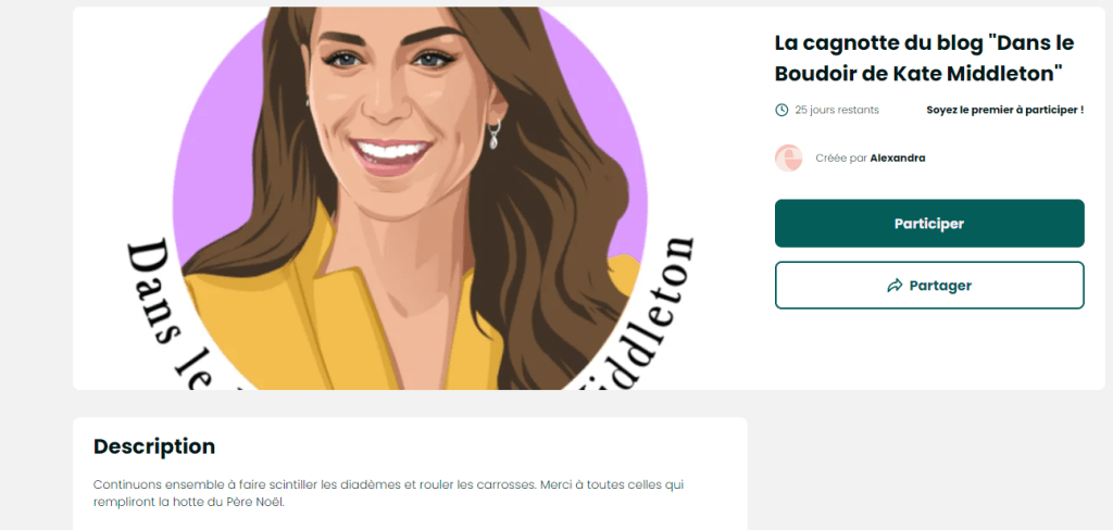 Chères lectrices, vous êtes très nombreuses à feuilleter les pages de votre blog préféré. Voilà bientôt 14 ans que je chronique la vie de la princesse de Galles. En coulisses, c’est beaucoup, beaucoup de travail. J’ai donc décidé de lancer la cagnotte du Boudoir pour compenser les frais techniques. Continuons ensemble à faire briller les diadèmes et rouler les carrosses.