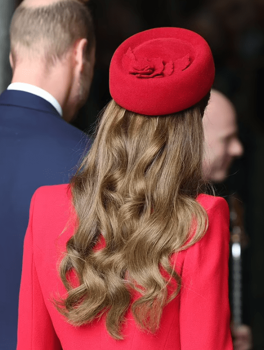 Et je ne suis pas une adepte de ce chapeau. Je trouve que la forme ne va pas à Kate, il est placé trop en arrière de la tête et avec sa chevelure cela la vieillit.