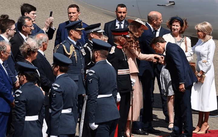 Le rituel des formalités d’accueil est réglé comme du papier à musique. Kate et William ont souhaité la bienvenue à moult hauts dignitaires. Ce sont des champions de la diplomatie. Les photographes mitraillent les élégantes. Chacune incarne son style, ses couleurs. Les dames se sont apprêtées, coiffées, maquillées. Kate salue la haute couture française, un bel exemple de diplomatie du vestiaire. C’est Dior qui l’habille : ensemble blush composé d’une veste Bar – pièce iconique du New Look dessinée en 1947- sur une jupe tutu. Jess Colletta a réalisé le chapeau assorti. Les rédactrices de mode glosent à cœur joie. Kate ou Brigitte, qui remporte la palme de la mode ?