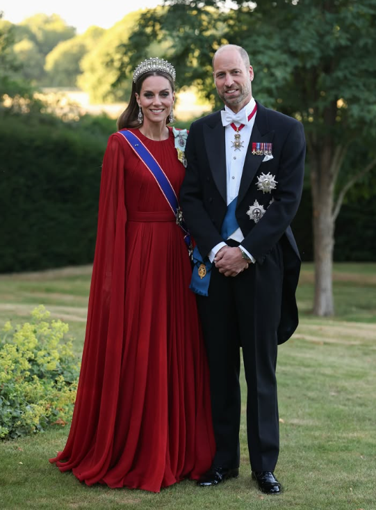 Un banquet apporte la touche féerique à ces festivités. La princesse de Galles fait monter le suspense de plusieurs crans. Se sentira-t-elle en forme pour ceindre le diadème ? “Il y a des jours où on ne peut plus faire ce que l’on faisait auparavant”...a-t-elle confié aux patients soignés à l’hôpital de Colchester visité récemment. Cela fait deux qu’elle n’a pas assisté à une réception grandiose. Finalement, la nouvelle que tout le monde attend se voit officialisée par le palais de Kensington. La princesse de contes de fées n’a pas dit son dernier mot. Une fois n’est pas coutume, les Galles prennent la pause dans les jardins de Windsor en tenue d’apparat. Une légende accompagne leur portrait : “Prêts pour ce qui promet d’être un merveilleux Banquet.” La chevelure auréolée de perles et de diamants (The Cambridge Lover’s Knot tiara ), elle paraît dans une tenue de cour pourpre griffée Givenchy. Catherine the Great hypnotise la soirée. Les internautes sont sous le charme.